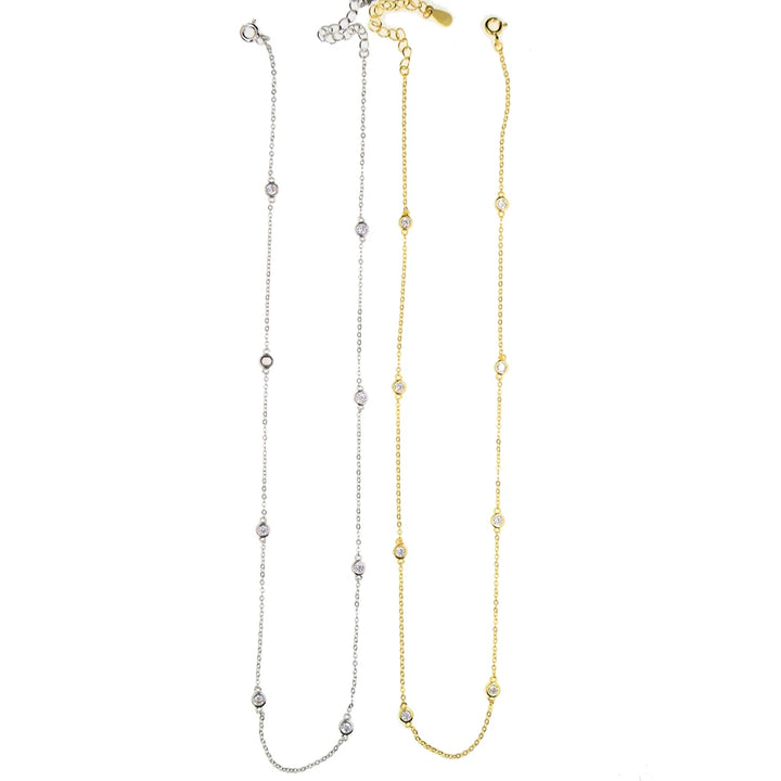 سلسله نسائيه من الفضة الإسترلينية عيار 925 مرصعة بأحجار الزركونيوم مقاس 18 بوصة الزركونيوم مقاس 3 مم