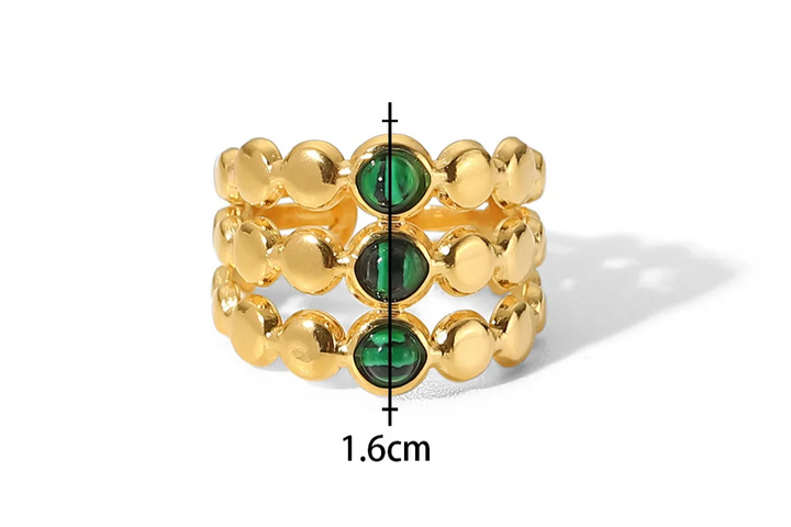من الفولاذ المقاوم للصدأ مطلية بالذهب عيار 18 قيراطًا من Uworld بثلاث طبقات من الملكيت الأخضرخاتم نسائي
